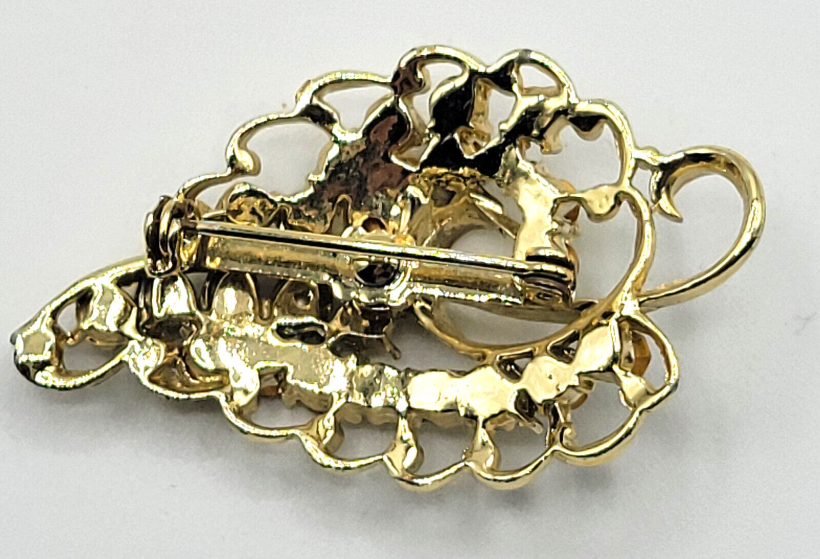 Faux Pearl Fantasy Brooch Pin Gold-Tone Metal Fashion Jewelry 2"