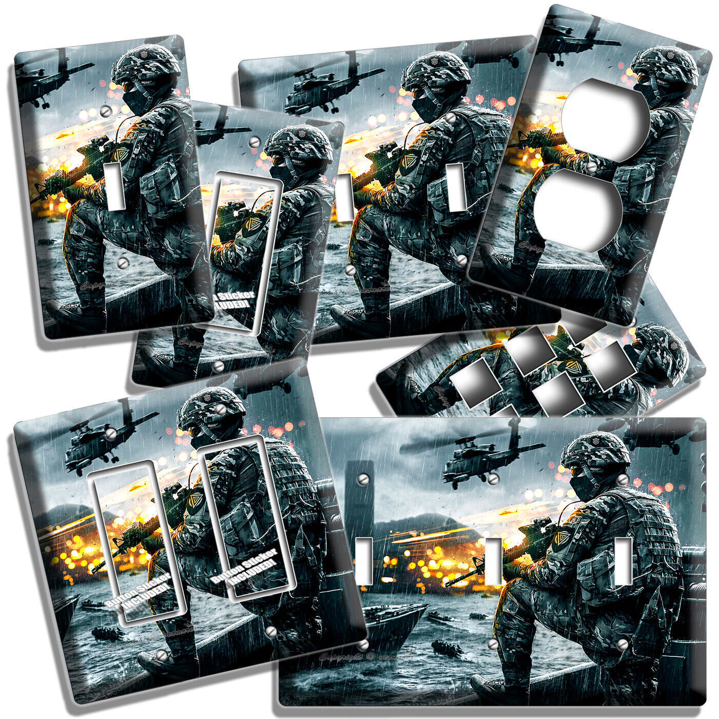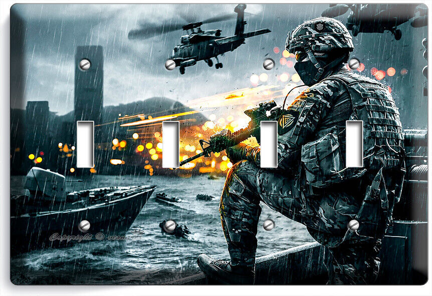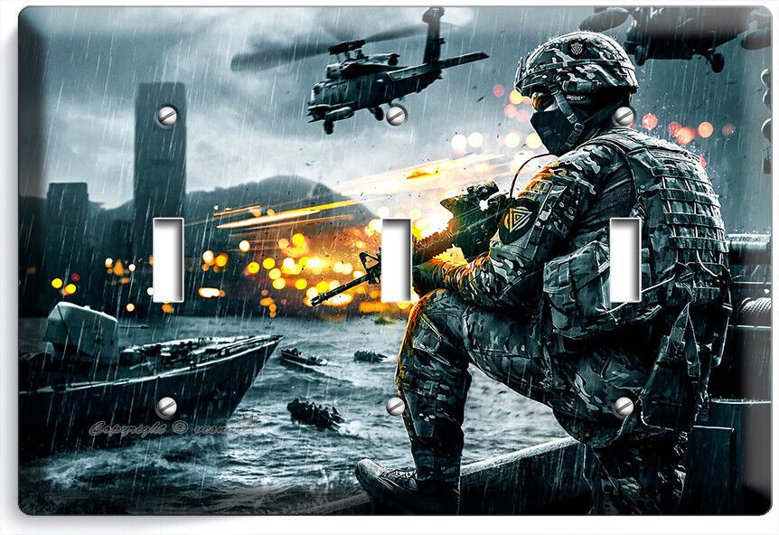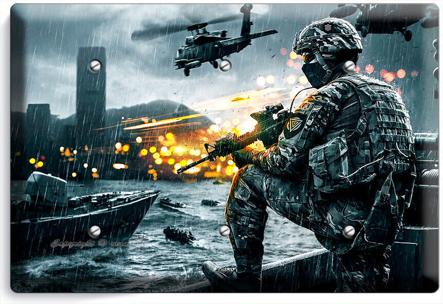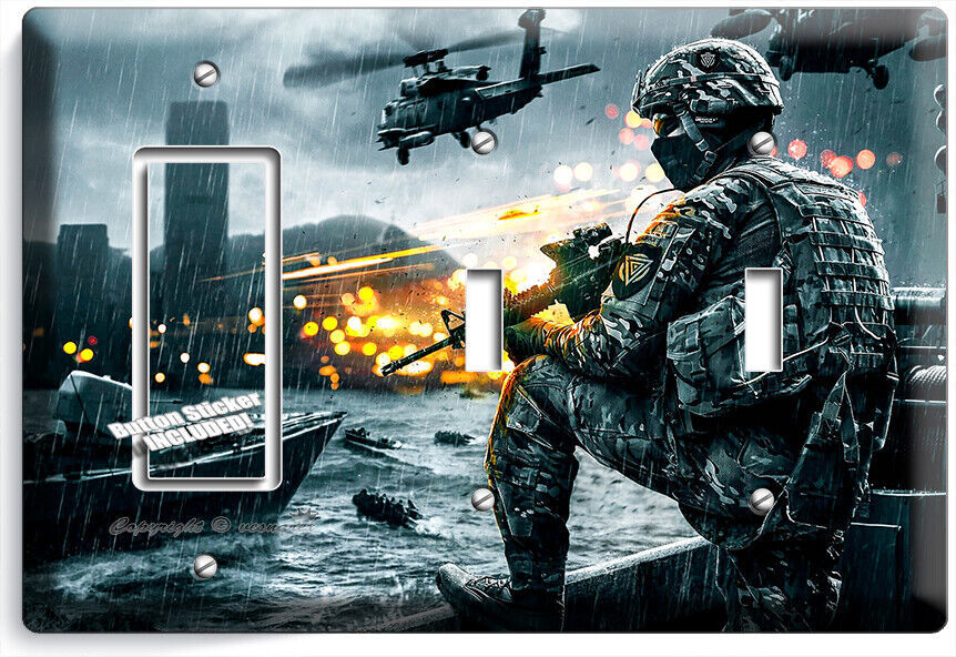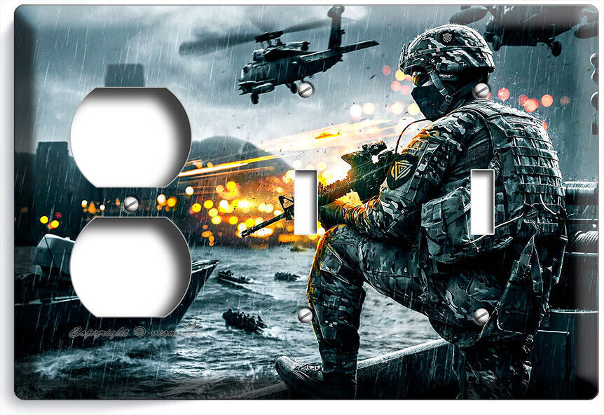 FIRST SHOOTER WAR GAME LIGHT SWITCH OUTLET WALL PLATES COMPUTER GAMER ROOM DECOR