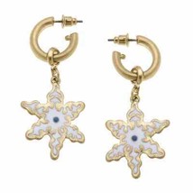 White Enamel Snowflake Cookie Dangle Drop Hoop Earrings