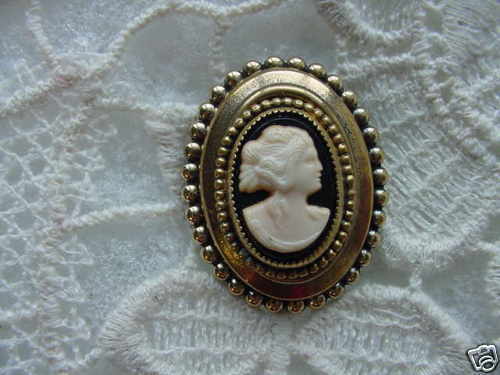 (c508) Black white Tribal Lady cameo pin pendant vintage 50's