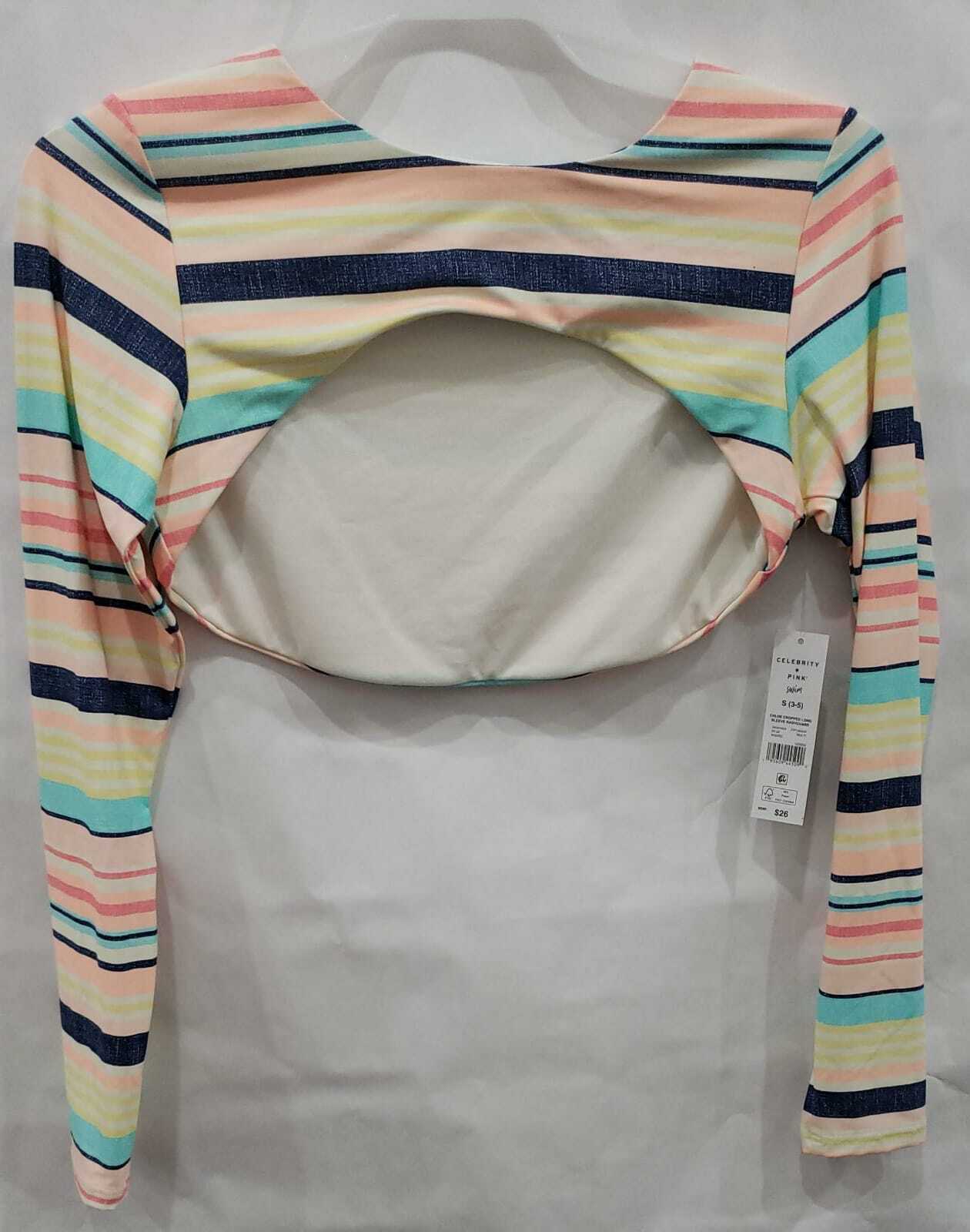 Celebrity Pink Cropped Long Sleeve Rashguard Swimsuit Top Size M Multicolor
