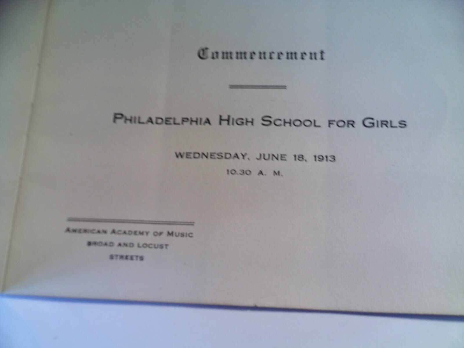 are bidding on a nice, original old, 1913 dated booklet, 16 pages, the commencement of the Philadelphia High school for Girls with program and list of students. Covers have some light general wear and old creases, light general page wear. Zoom in for details.