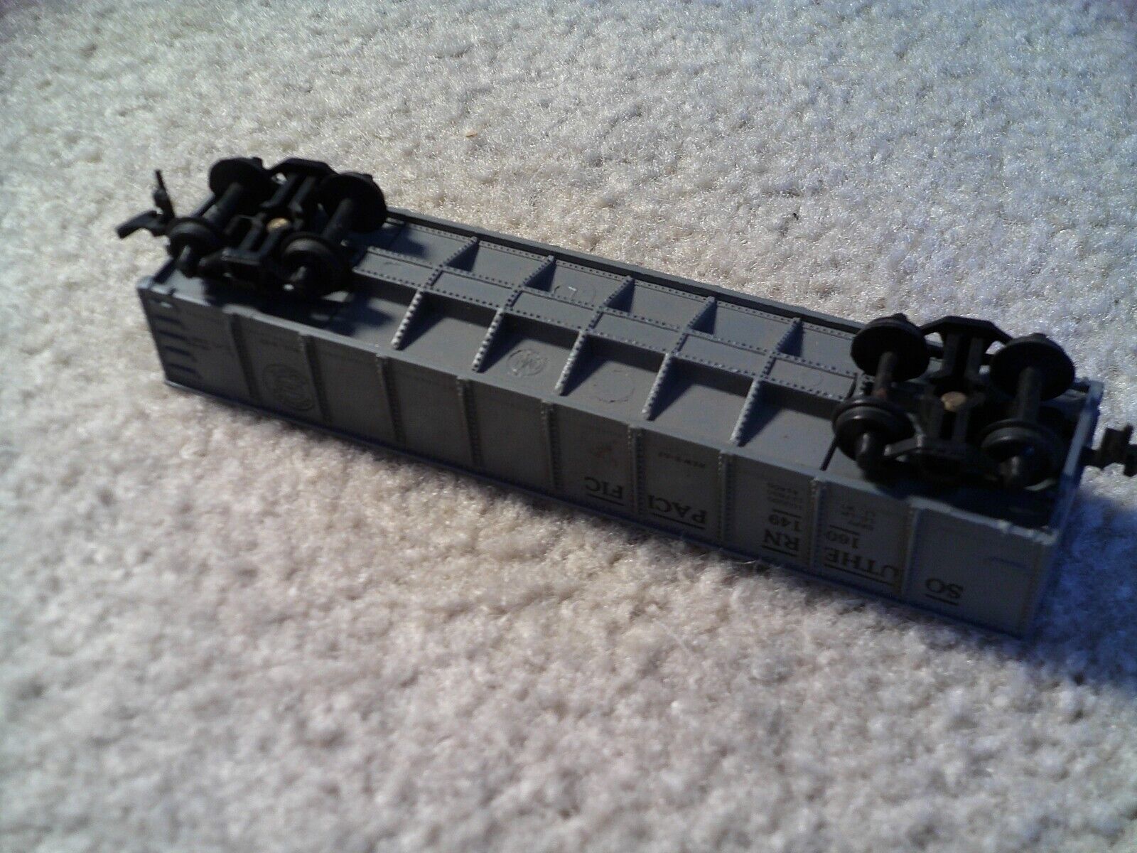 You are bidding on an older, vintage circa 1960s era, HO Scale, Marx marked, Southern Pacific 160149 gondola car in the pictures. 5 3/4 inches long. Very good shape with wear from use, missing all four lower steps and needs a good cleaning. Zoom in for details.