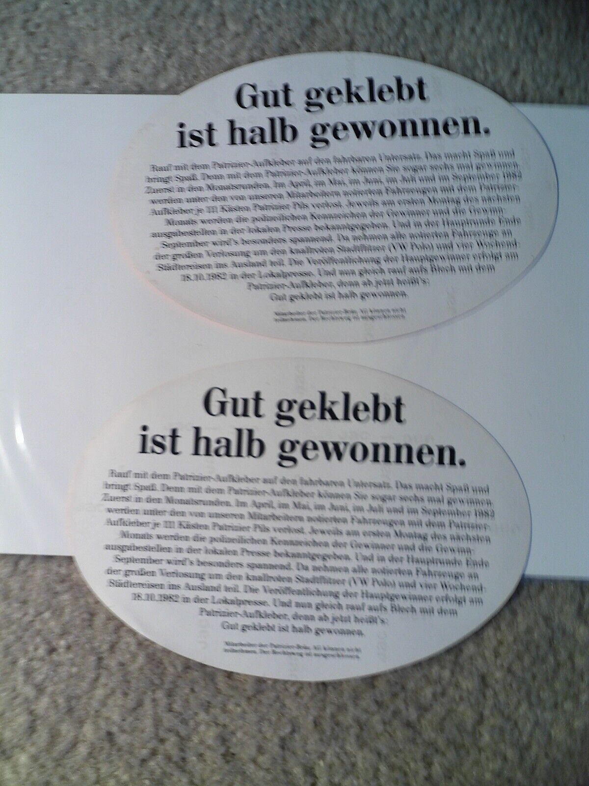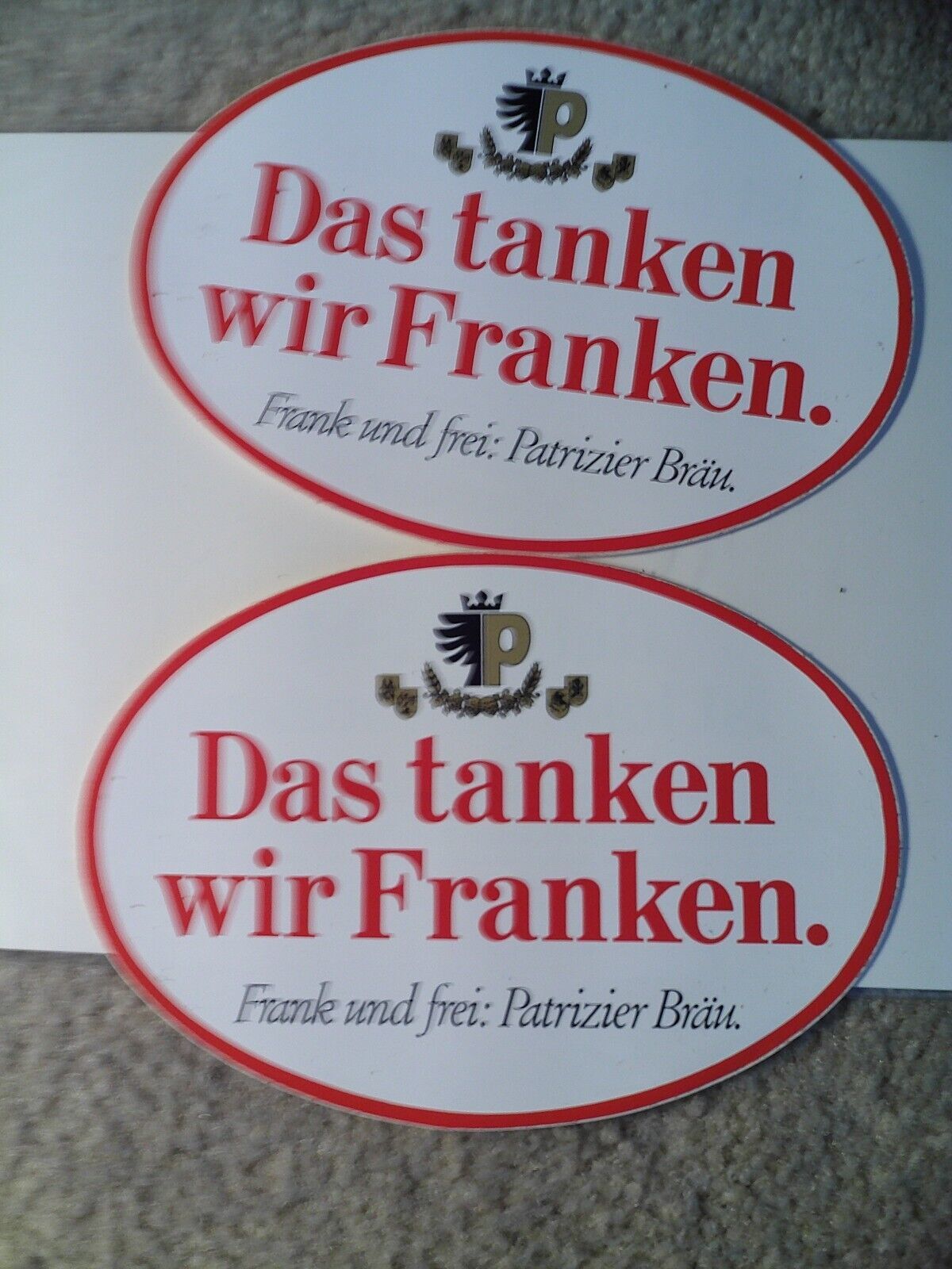 Lot of 2 Vintage Frank und Frei Patrizier Brau German Beer Stickers