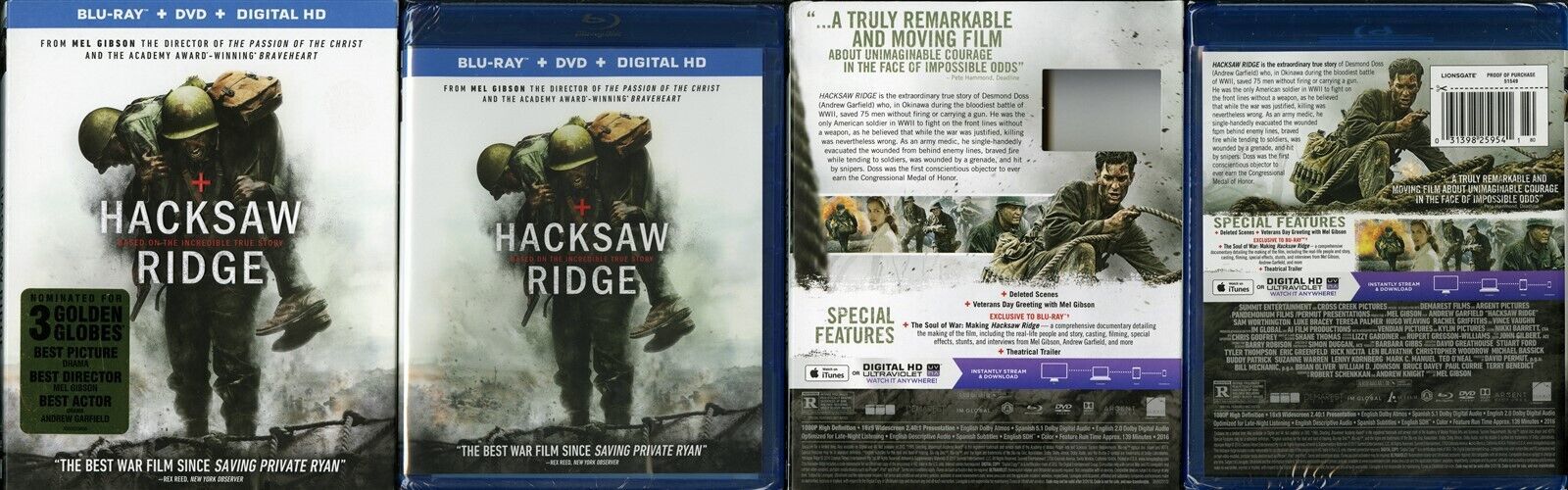 HACKSAW RIDGE BLU-RAY TERESA PALMER RACHEL GRIFFITHS SUMMIT VIDEO NEW/SLIPCOVER