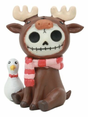 Furry Bones Pink Scarfed Spruce The Moose With White Duck Skeleton Figurine 3"H