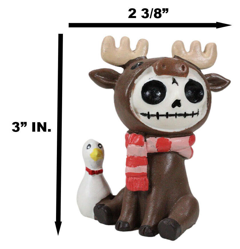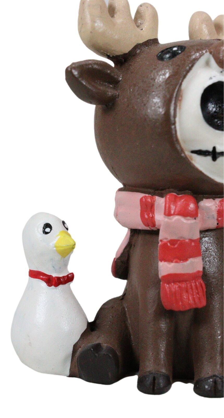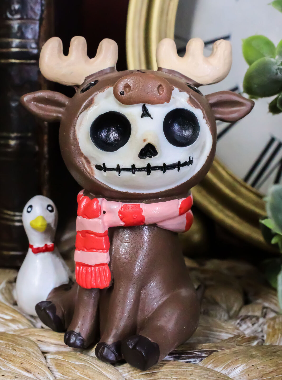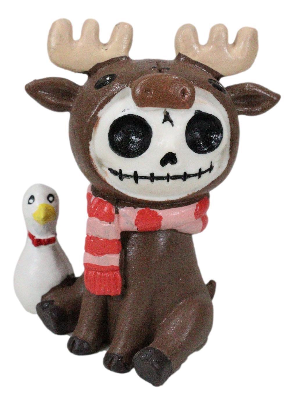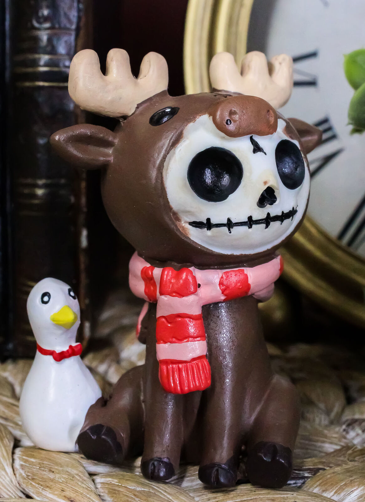 Ebros Furry Bones Pink Scarfed Spruce The Moose With White Duck Skeleton Figurine 3"H