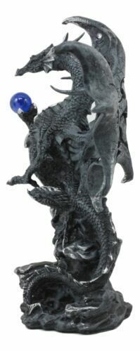 Ebros Draco Fantasy Gothic Dragon With Blue Orb Statue 8" Tall Land Of The Dragons