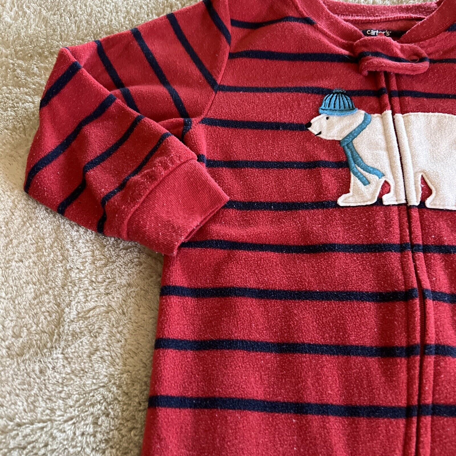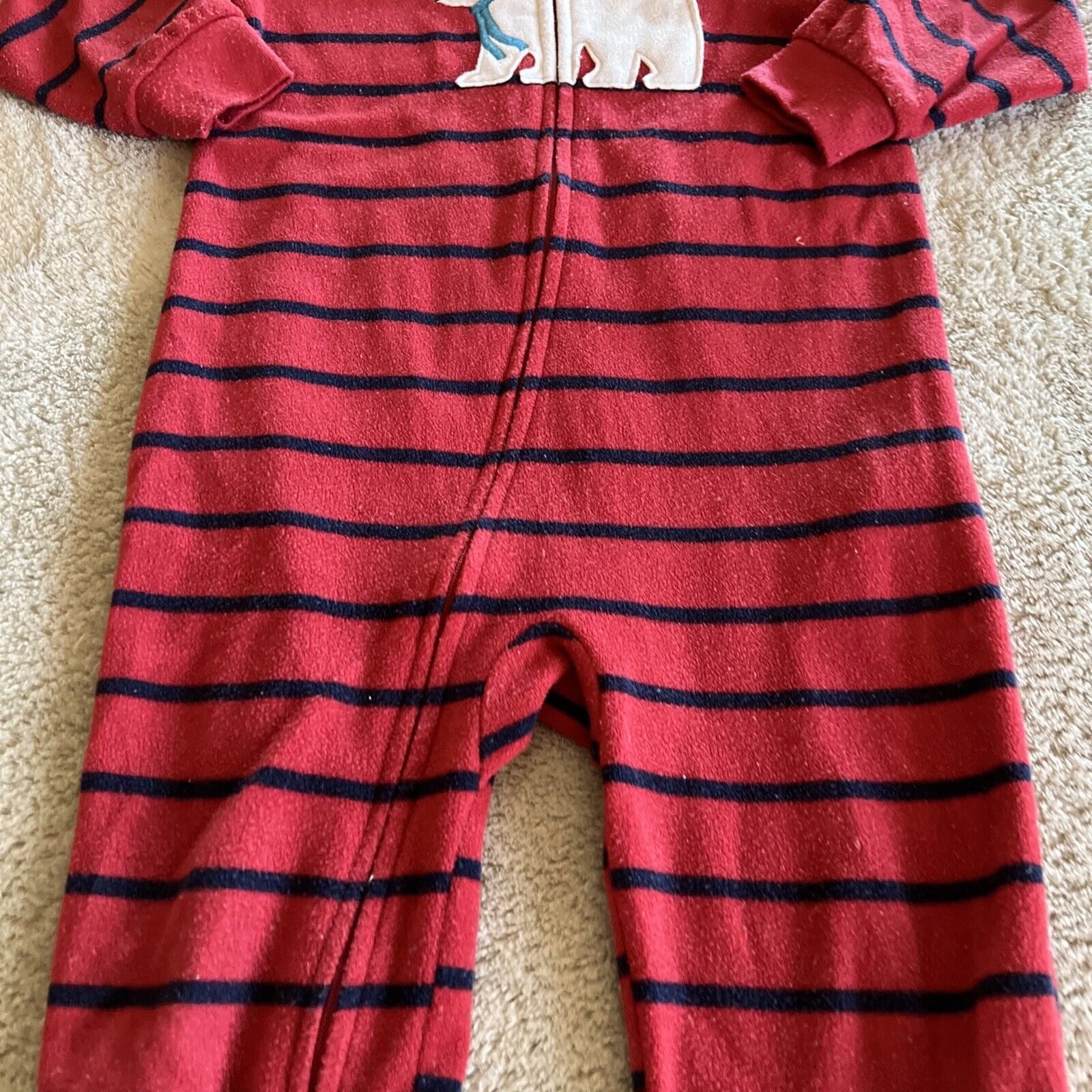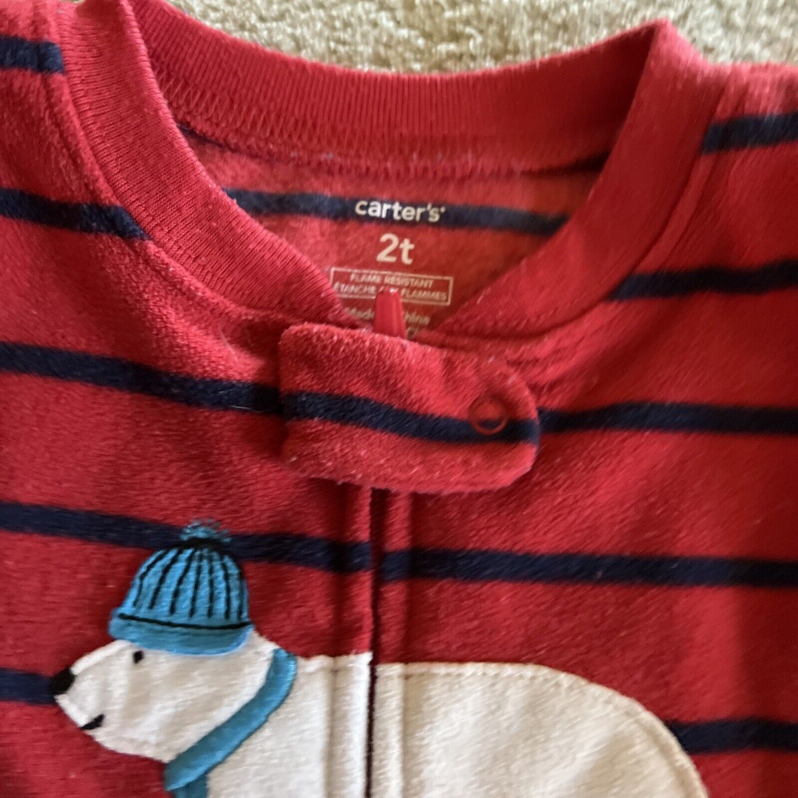 Carters Boys Red Blue Striped White Polar Bear Fleece Long Sleeve Pajamas 2T.