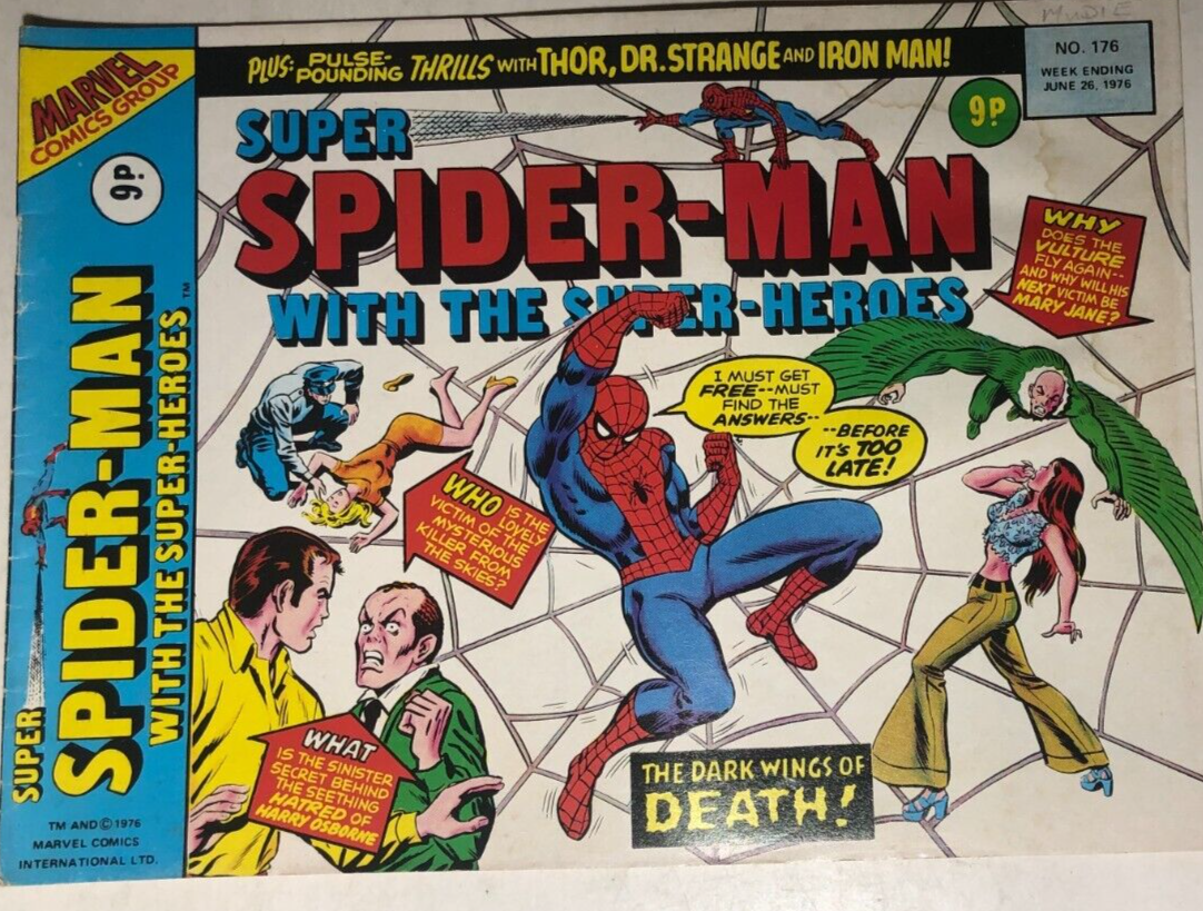 SUPER SPIDER-MAN WITH THE SUPER-HEROES #176 (1976) Marvel Comics UK VG+/FINE-