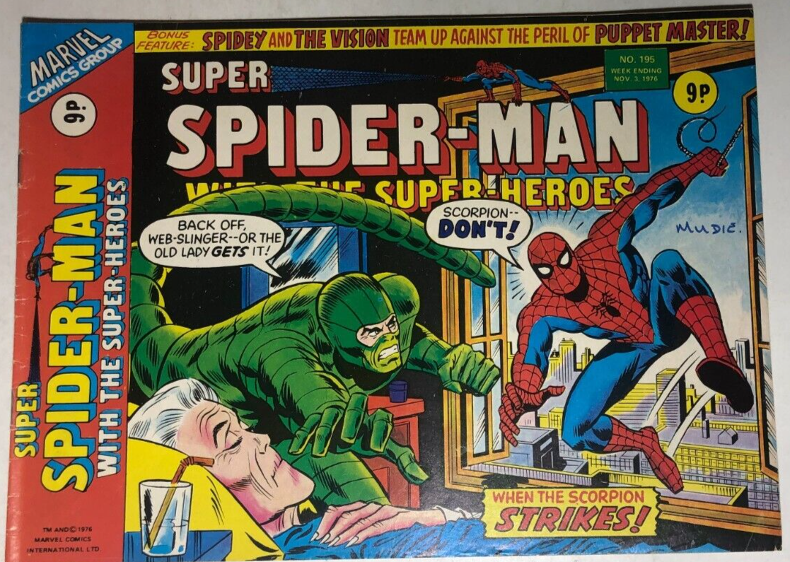 SUPER SPIDER-MAN WITH THE SUPER-HEROES #195 (1976) Marvel Comics UK VG+