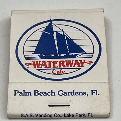 Vintage Matchbox Cover Waterway Cafe restaurant Palm Beach Gardens, Fl gmg