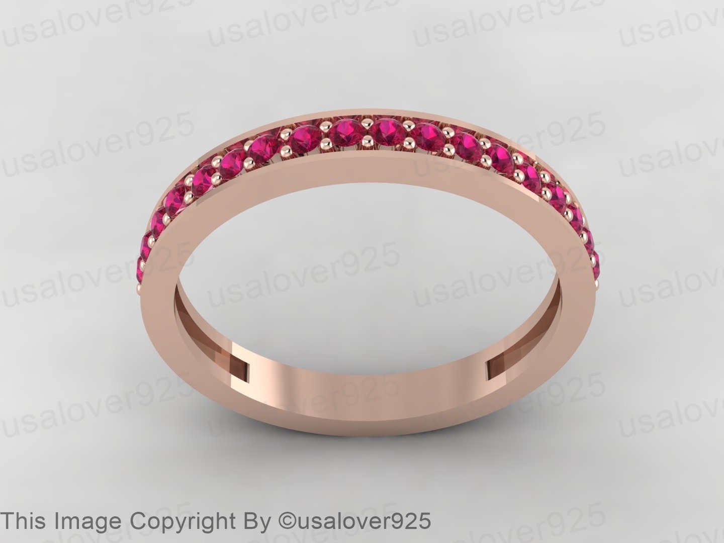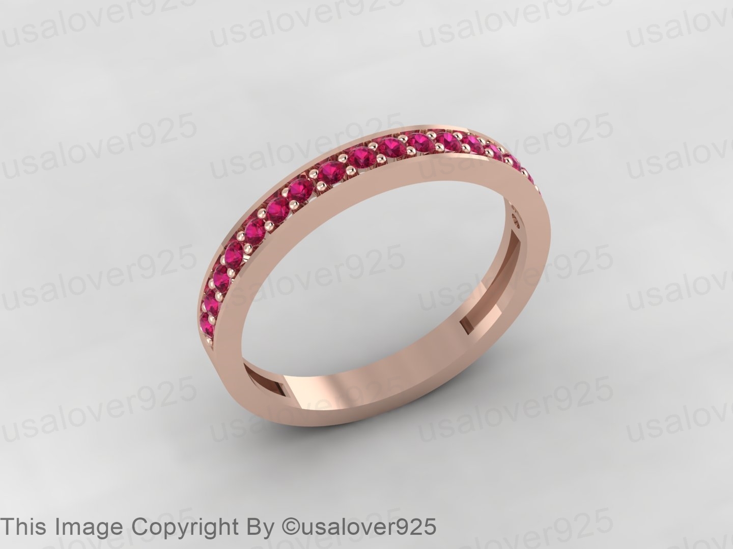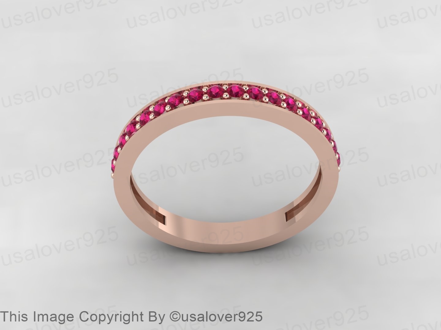 Natural Pink Ruby Gemstone Sterling Silver Full Eternity Women Band Ring