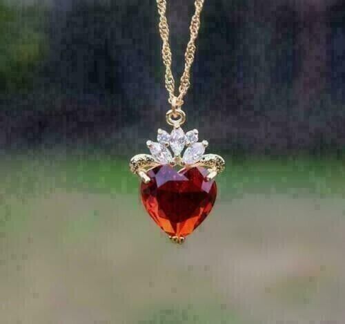 2.00Ct Heart Cut CZ Red Garnet Pendant 14K and 50 similar items