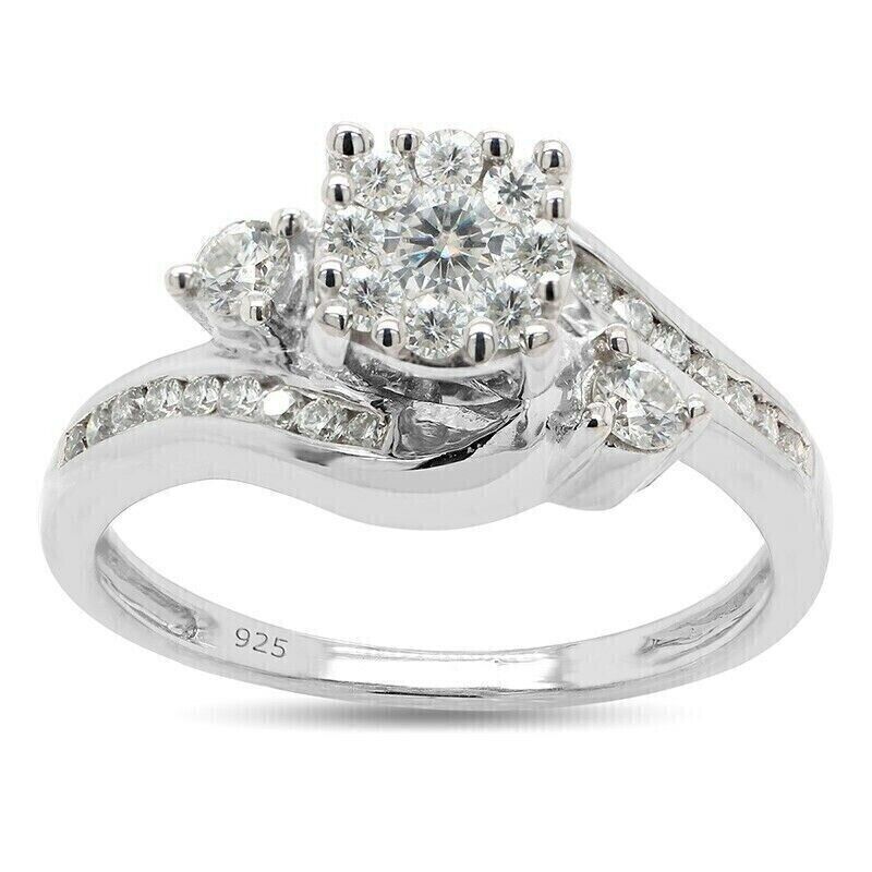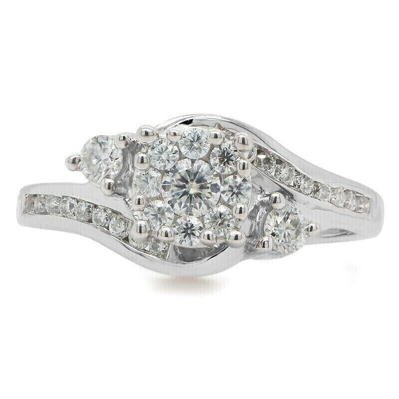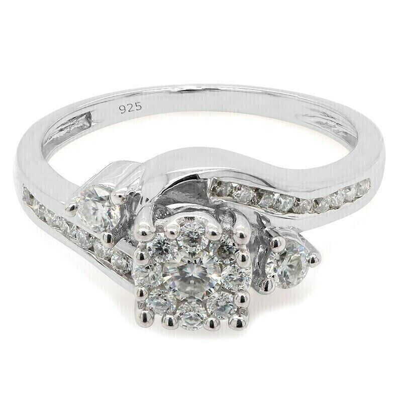 0.44Ct Round Cut CZ Moissanite Bypass Engagement Ring 14K White Gold Plated