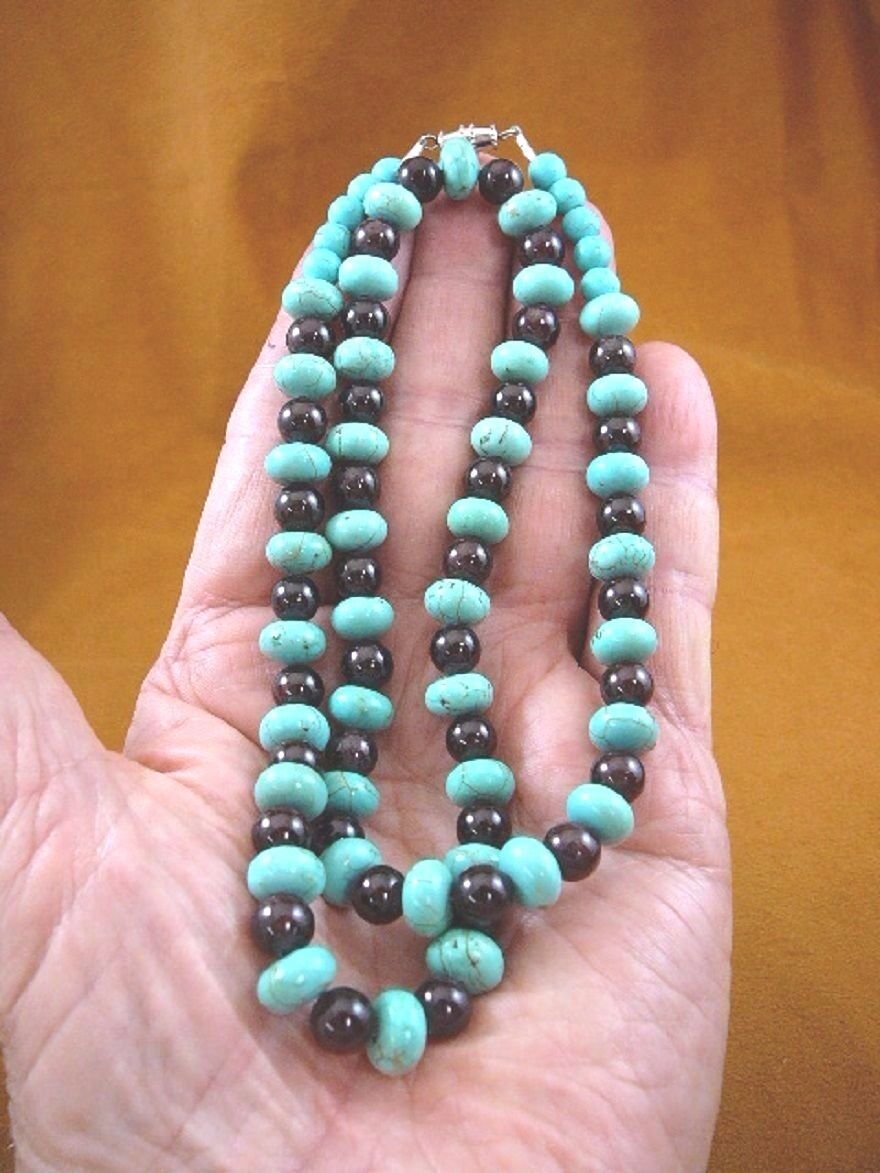 (v326-110) 16" long Chinese turquoise + dark red Garnet bead gemstone Necklace