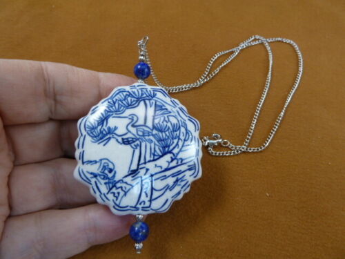 (J513-8) CHINESE characters symbol white blue PORCELAIN + Lapis gemstone PENDANT