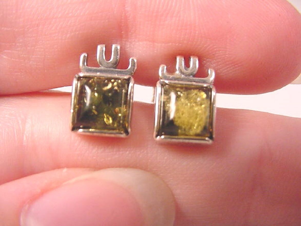 (Internal #PE28-D) You are bidding on this natural, genuine pair of Baltic GREEN AMBER SQUARE EARRINGS from Poland, mined on the shores of the Baltic Sea; set in .925 sterling silver stud earrings, our jewelry does not have bug inclusions but may have other natural crystal formations within it. We have hand picked these for their extraordinary variation of colors that make amber so mystical.