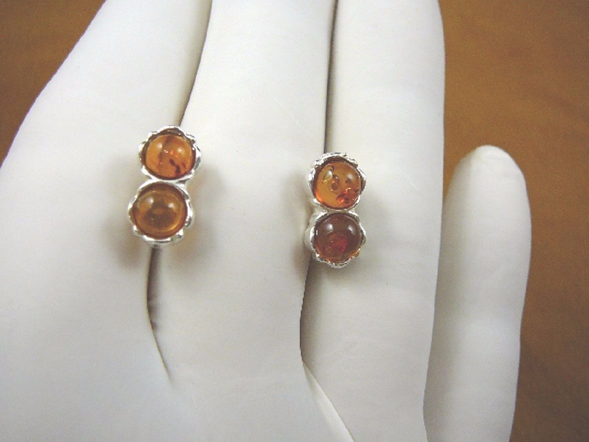 (Internal #PE28-24) You are bidding on this natural, genuine pair of Baltic ORANGE AMBER, round shaped two stone EARRINGS from Poland, mined on the shores of the Baltic Sea; set in .925 sterling silver post earrings, our jewelry does not have bug inclusions but may have other natural crystal formations within it. We have hand picked these for their extraordinary variation of colors that make amber so mystical.
