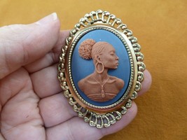 (CA20-75) RARE African American LADY blue + brown CAMEO oval brass Pin Pendant
