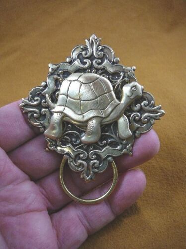 (E-480) Galapagos turtle on floral brass Eyeglass pin pendant ID badge holder