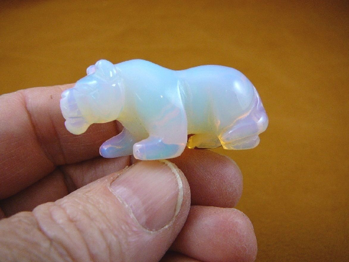 (Internal #Y-PANT-556) Great carving of a Growling PANTHER also could be LEOPARD, 1-3/4" long. Superb quality of polished WHITE OPALITE GLASS (looks lit from within, has gemstone status though it's man-made), this high quality gem has been hand-carved in China.