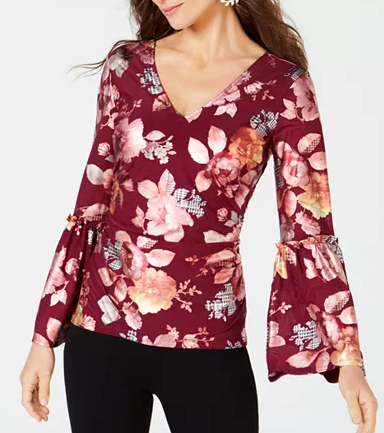 Thalia Sodi Printed Bell-Sleeve Top Womens Clothing - Tops. Fitted; hits at hip; approx. 26 long V-neckline Shirred at waist Bell sleeves Shell: nylon/spandex; lining: polyester Hand wash