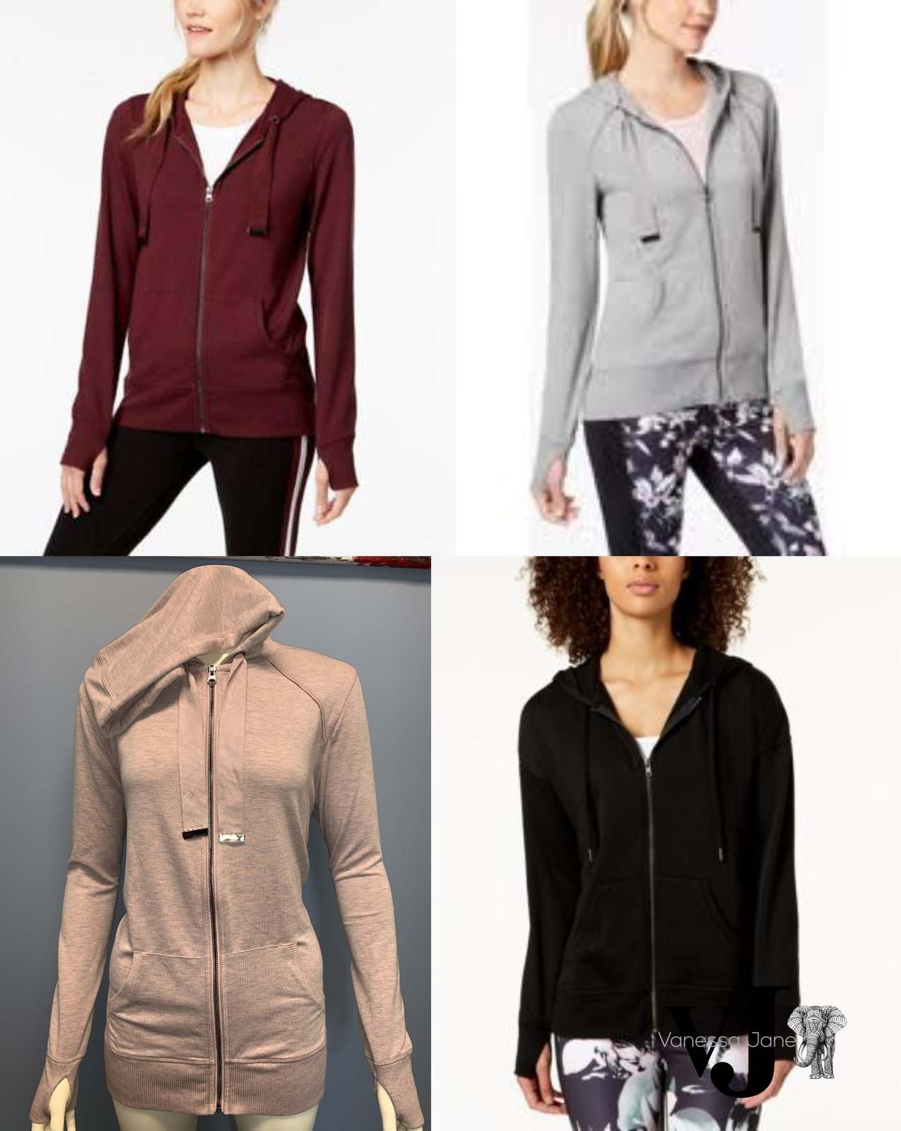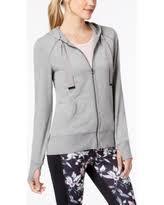 An active essential in a versatile solid color, this zip hoodie from Ideology adds a warm layer to your workout ensemble or casual look. Hits at hip; semi-fitted INSPIRED FOR: Athleisure Attached hood with drawstring; zipper closure at front; long sleeves with thumbholes; kangaroo pockets Polyester/rayon/spandex Machine washable Location: Box A56 Location: Box a127 (M StormyHeather and ShimmerPink 1X) Box A56 (S / Wine 1) Box a127 (1X / ShimmerPink-1) Box B102 (XS / Noir-1) Box B102 (3X / Noir-1) Box A29 (2X / Noir-1)