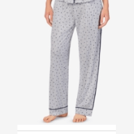 Relaxed, classic styling turns bedtime chic from contrast trim accents in this logo-enhanced pajama set from DKNY. Pants: hits at ankle; approx. length: 30-1/4; elastic waist and drawstring closure Cotton/rayon Machine washable Imported