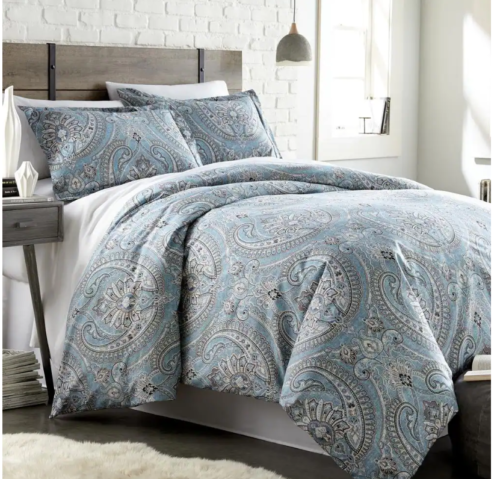 Pure Melody Paisley Comforter and Sham set features a beautiful paisley print. The classic paisley pattern will bring perfect harmony to your bedroom while our all-season fluffy comforter will entice you to stay snuggled up in your comfy bed. Set includes one comforter and 2-shams (one sham in twin sizes). Ultra-soft and durable 110 GSM brushed microfiber fabric cover 240 GSM down alternative fill All-season comfort Set includes: 1-comforter and 2-shams Full/Queen dimensions:-comforter: 92 in. wide x 92 in. long 2-shams: 20 in. wide x 26 in. long