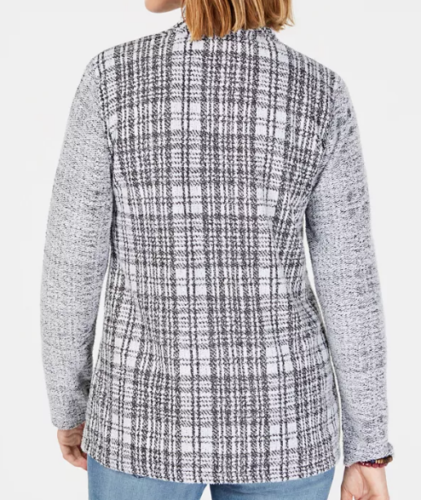 Style and Co Petite Plaid Eyelash Cardigan, Black/Gray, Size PS