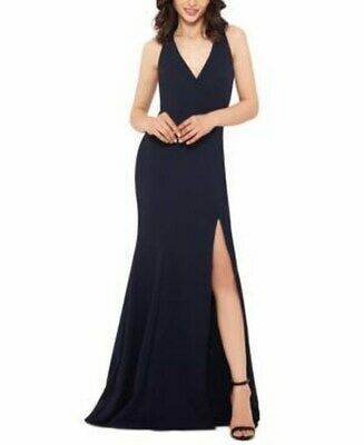 Update your closet with fashion designs from XSCAPE and discover all the stylish pieces they have to offer. Youll find versatile wardrobe trends that will look perfect with various outfits and occasions. Whether you are missing something modern, casual, or chic XSCAPE has the selection your closet, and you, have been waiting for! XSCAPE Style: Dress Material: Polyester Color: Navy V Neck Full-Length Sheath Sleeveless Slitted Zippered