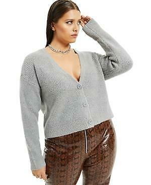 Danielle Bernstein Button-Front Cardigan-2X/Grey