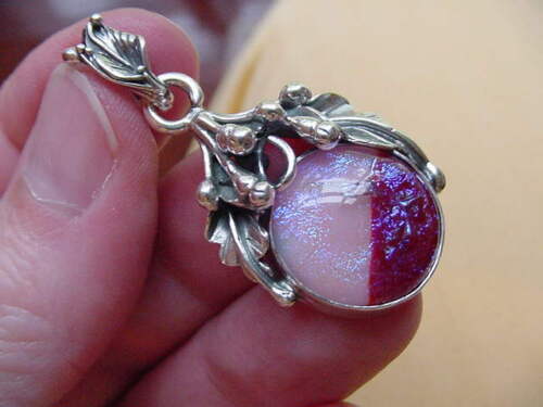 (#D-99-B) DICHROIC Fused GLASS Pendant SILVER WHITE RED PINK BLUE