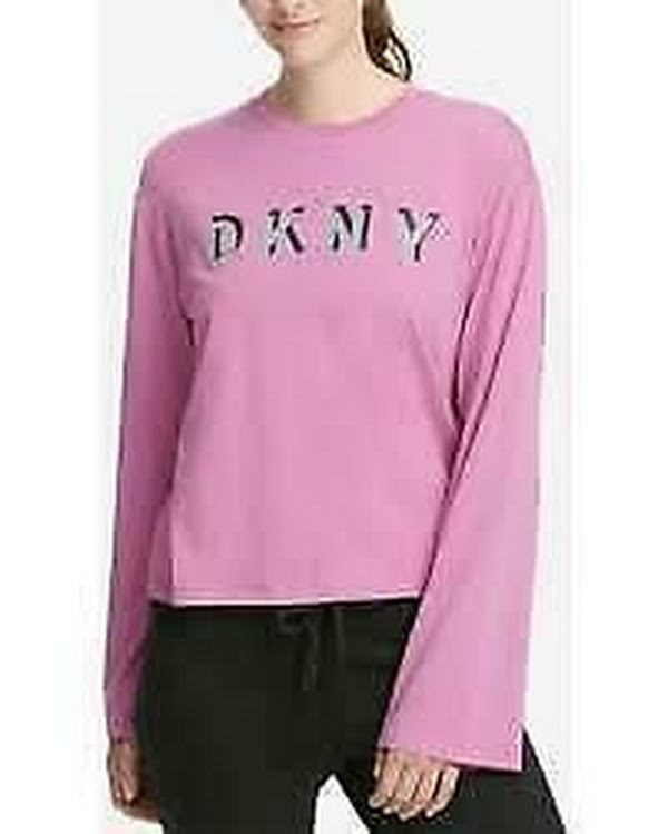 Upgrade your T-shirt look to this chic top from DKNY Sport, a relaxed fit with bell sleeves for fashionable flair. Approx. model height is 510 and she is wearing a size S/Pink Hits at hip; relaxed fit INSPIRED FOR: Athleisure Crew neckline; long bell sleeves; logo at front Cotton/rayon/elastane Machine washable Imported