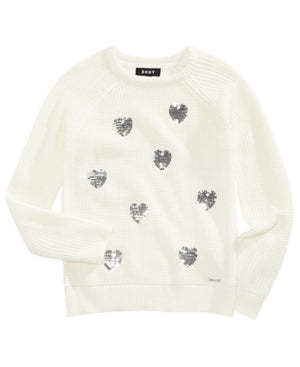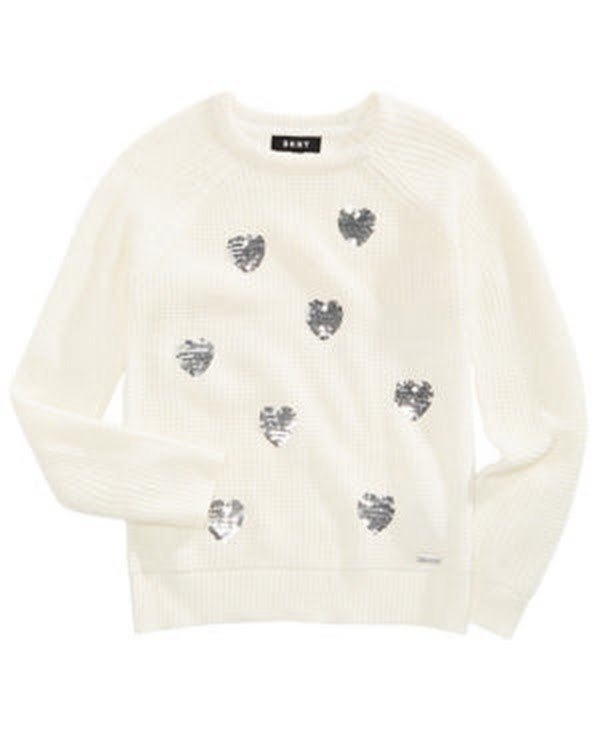 Cute hearts come alive with sparkly sequins at the front of this cozy sweater from Dkny.