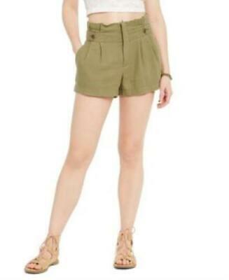 Rewash Juniors Button-Tab Paper-Bag Waist Shorts ,L/Sage