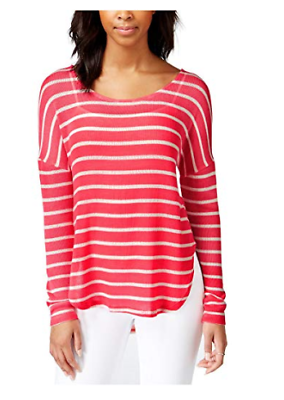 Maison Jules Womens Long-Sleeve Striped Lightweight Sweater Top Size XXL, Coral
