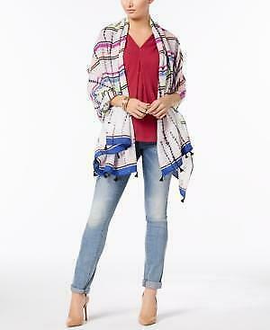 Color-splashed stripes and lines electrify a multi-texture I.N.C. International Concepts wrap tipped in tiny tassels. Measures approximately 35 x 72 Tassel trim One size fits most Wear as a sarong, cover-up, wrap or scarf Polyester Hand wash Imported