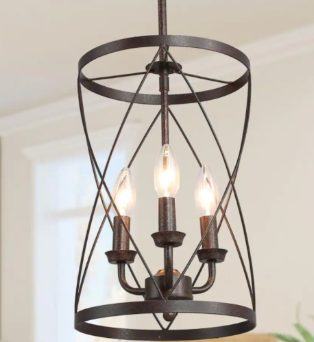 Lnc Farmhouse Chandelier Bronze Industrial 3-Light Drum Cage Candlestick Dining