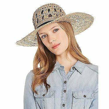 Aqua Filippo Catarzi Womens Open Weave Macramรฉ Straw Floppy Sun Hat Band Natural