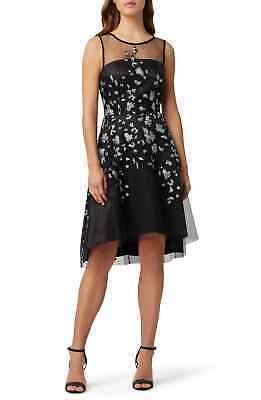 Tahari ASL Womens Hi-Low Illusion Neckline Embroidered Dress, Size 2
