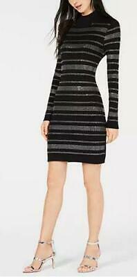 Bar III Rhinestone-Stripe Sweater Dress, Size XXS/Black
