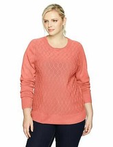 Sag Harbor Petite Long Sleeve Crew Neck Cable Front Pullover, Cheeky Blush PM