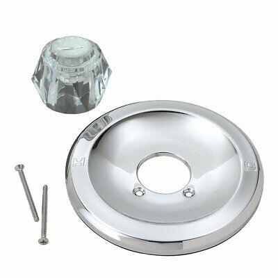Genuine OEM faucet trim kit with chrome trim and clear acrylic faucet handles includes all the pieces you will need to update your tub and shower For single handle tub and shower faucet applications For Delta Faucets 600 series faucets Kit Includes tub and shower faucet handle - clear acrylic, faucet handle button, faucet handle screw, escutcheon - chrome, and escutcheon screws Box C141 (chrome)