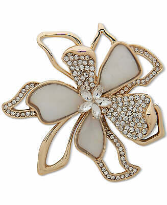 Anne Klein Gold-Tone Crystal & Mother-of-Pearl Flower Pin