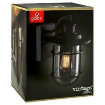 While the black finish and caged shade design adds a modern coastal element. Its perfect to place on either side of your entryway or by your garage door. Product Description The modern satin finish plus traditionally coastal caged shade of the Turner Outdoor Wall Sconce produces a truly versatile fixture that encompasses a variety of decor styles. The seeded glass shade drives home a Vintage feel while the black finish and caged shade design adds a modern coastal element. Its perfect to place on either side of your entryway or by your garage door. The modern design works well in a variety of different settings, so you can bring this sconce inside for a trendsetting look. Specifications Brand Name: Globe Electric Sub Brand: Vintage Number of Bulbs Required: 1-Light Color: Black Finish: Natural Product Type: Wall Sconce Design: Turner Depth: 10 in. Light Source: Incandescent Volts: 120 volt Hardware Included: Yes Hardwired or Plug In: Hardwired Casing Material: Metal Packaging Type: Boxed Watts: 60 watts Mounting Type: Wall Mount Recommended Bulb Type: E26 (Medium Base) Width: 8.75 in. Height: 13.58 in. Number in Package: 1 pk Indoor or Outdoor: Indoor and Outdoor Watts: 60 watt Sub Brand: Turner Number of Bulbs Required: 1-Light lights Design: Vintage