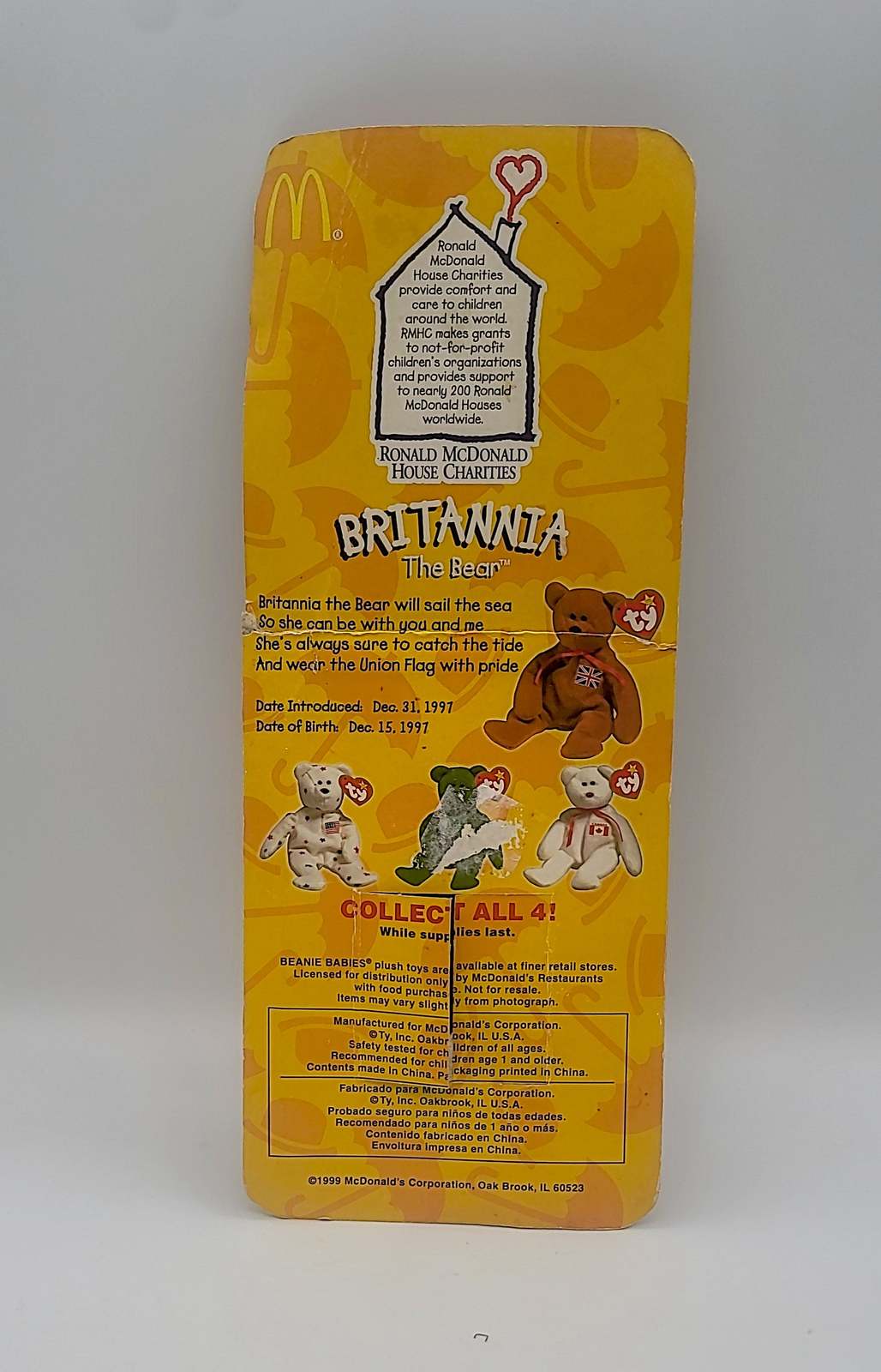 McDonalds Ty Beanie Baby Britannia the Bear Rare With 3TAG Errors 1993 Oakbrook