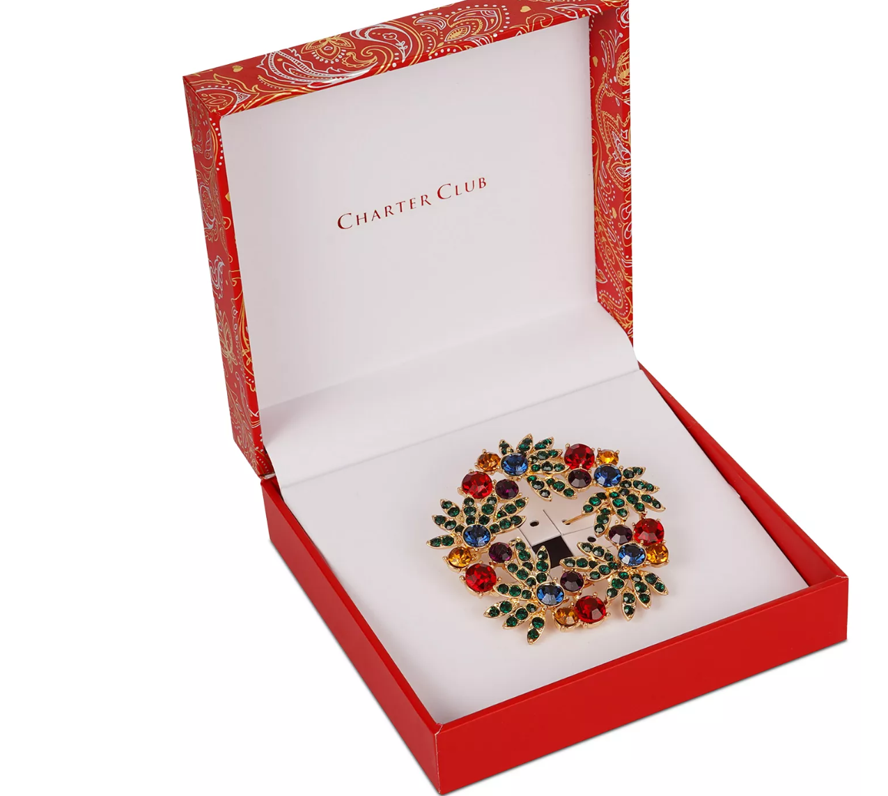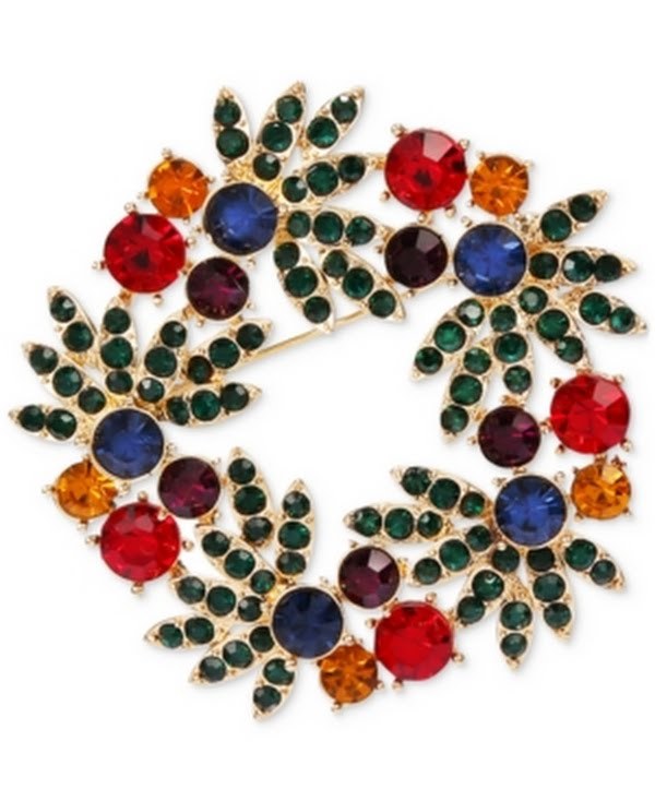 Bright colors seem to leap from this fabulous crystal wreath pin designed by Charter Club.