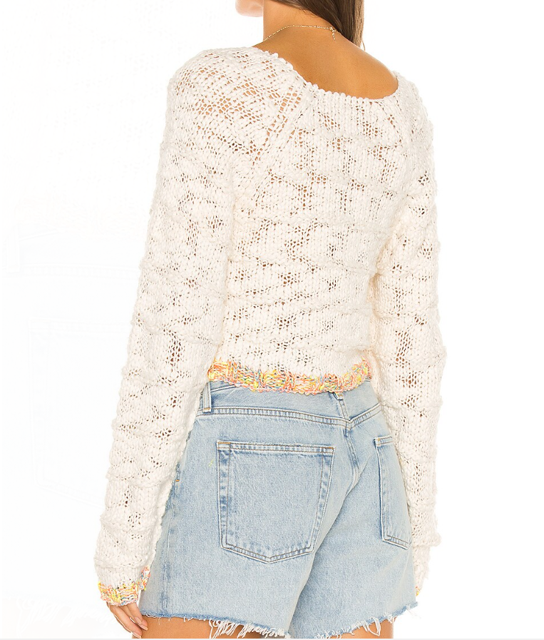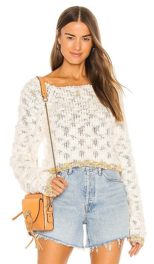 Free People West Palm Pullover in Ivory. Acrylic blend. Boatneck. Contrast trim. Lightweight knit fabric. FREE-WK875. OB1267660. Free People invokes a spirit of femininity and creativity. Throughout their line of sweaters, tees, dresses and more, each piece incorporates a high level of quality and originality that reflects their adventurous it girl. With all thats constricting in the world today, Free People says your clothes dont have to be. Be yourself, be creative, be free.